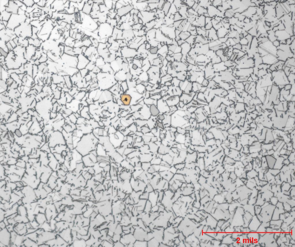 using Waterless Kalling’s Reagent. The sample microstructure consists of Ni3Nb in